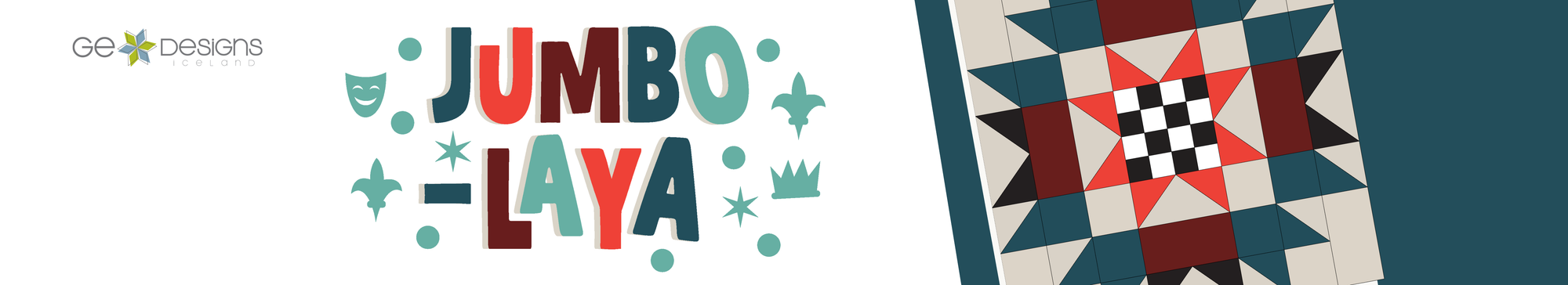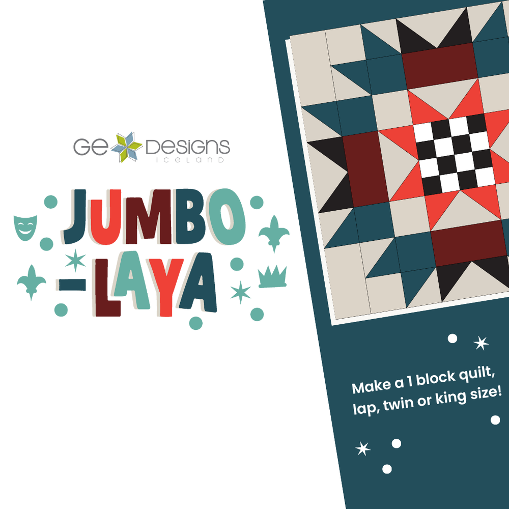 Jumbo-Laya is a nine month mystery Block of the Month quilting program designed by Gudrun Erla. Each month, you create one bold 32 inch jumbo block named after a different place in Louisiana. The design is revealed on release day, keeping the experience fun and motivating.