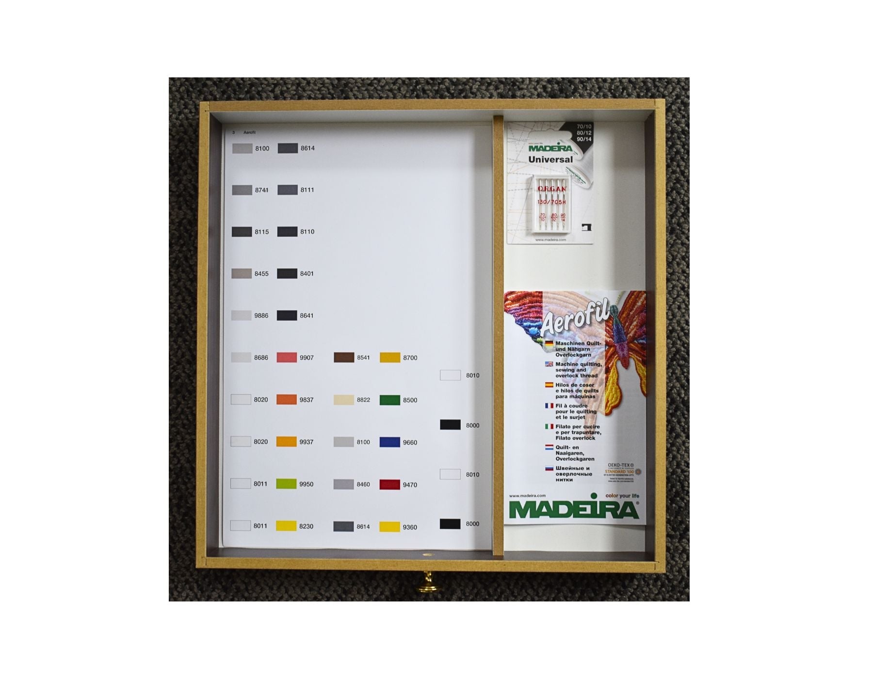 The Aerofil 120 3-drawer Treasure Chest is the ultimate thread storage option for those who want their sewing room or studio to look its best. This finely crafted 3-drawer wooden chest includes 182 spools of 40-weight Madeira Aerofil Polyester Quilting & Sewing Thread and 12 spools of our extra strong 25-weight Aerofil No.35 thread.