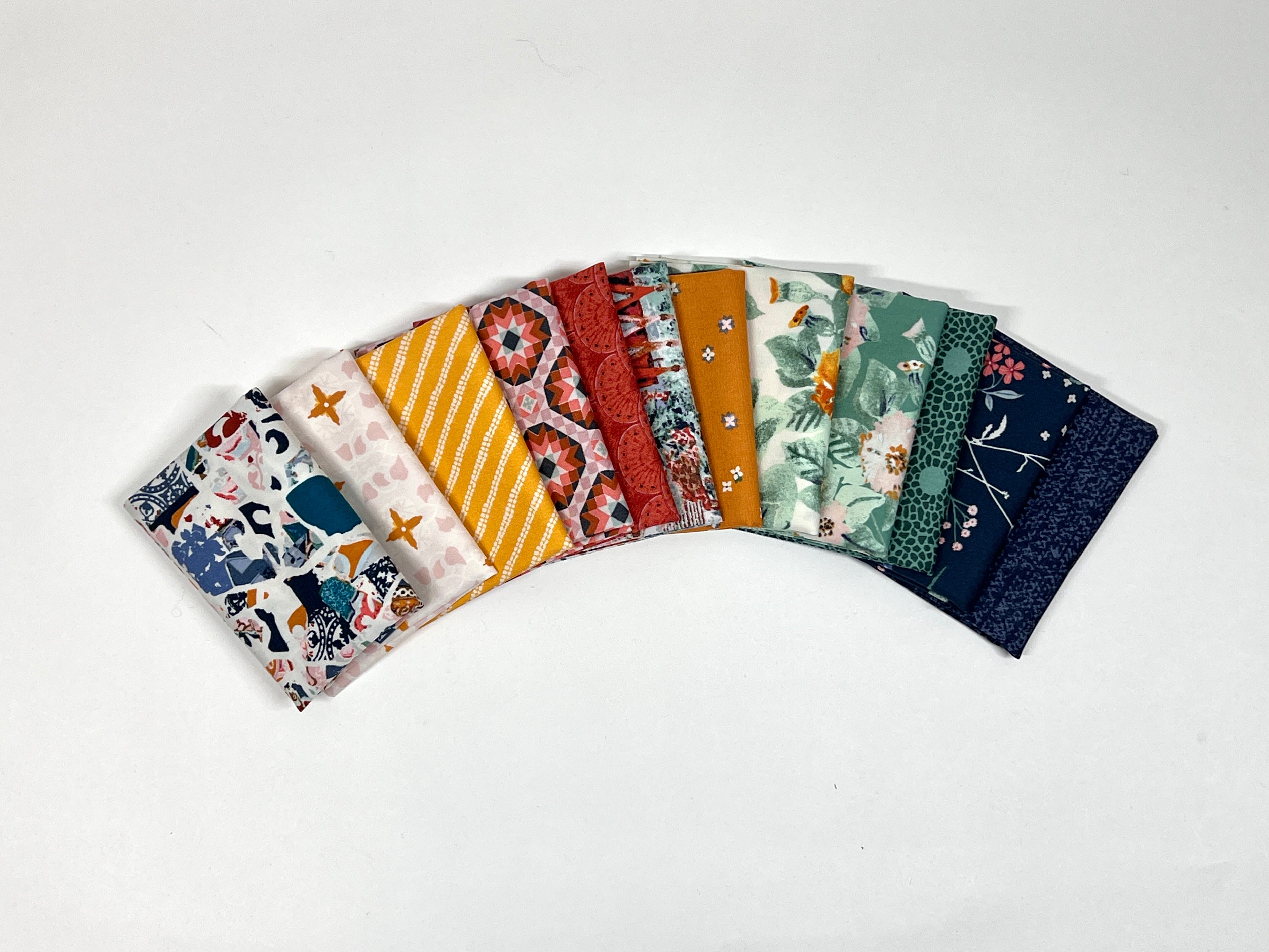 The Barcelona Lil' Bundle includes 12- 6"x21" cuts of fabric from the Barcelona collection by Katarina Roccella for Art Gallery Fabrics to create any GE Designs Lil' Table Runner. The lil bundle does not include fabric for 1/4 yard of binding.
