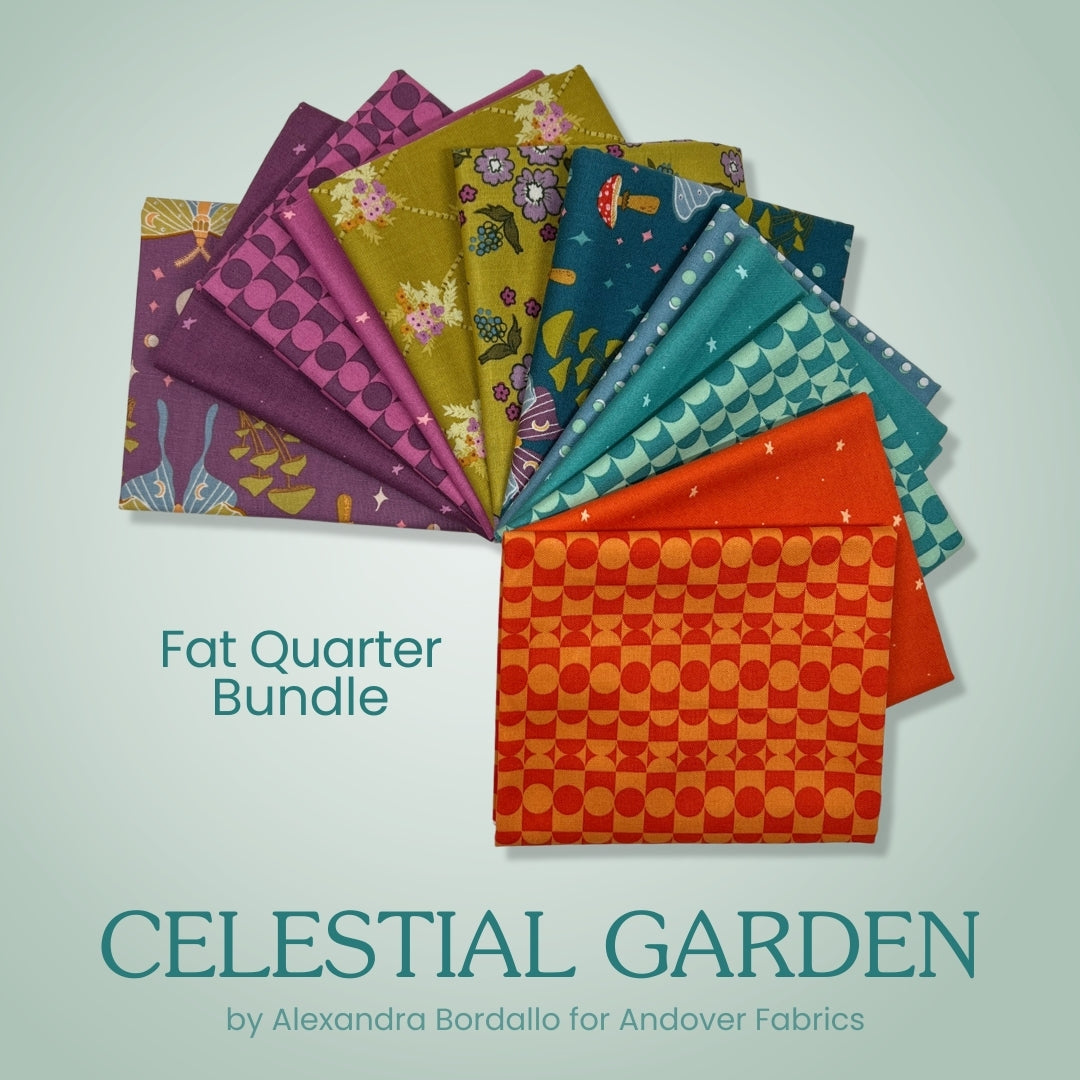 Step into a vibrant world of color and wonder with the Celestial Garden Fat Quarter Bundle by Alexandra Bordallo for Andover Fabrics.