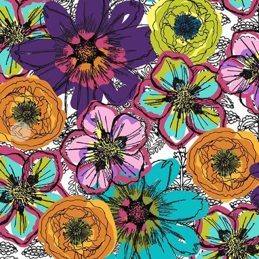 A THREE yard cut of 108" wide Flower Fields White by Natalie Barnes for Windham Fabrics.