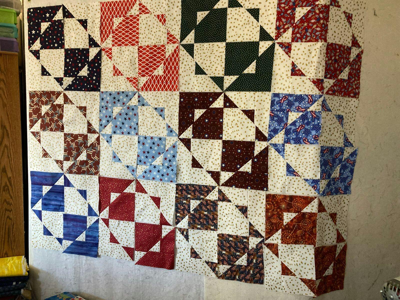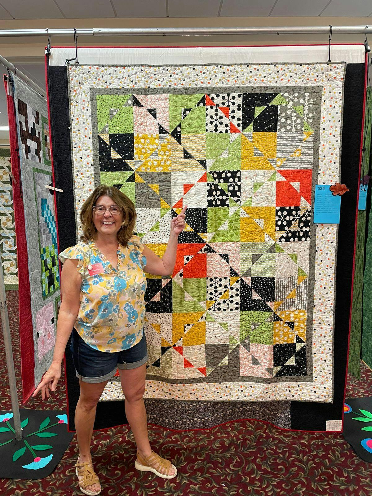 This quilt uses assorted 10" squares of light and dark fabrics as well as innovative piecing and cutting with the Stripology Squared ruler by GE Designs. Instructions for using regular rulers are included. The pattern comes with 5 different size options: crib, lap, full, queen, king.