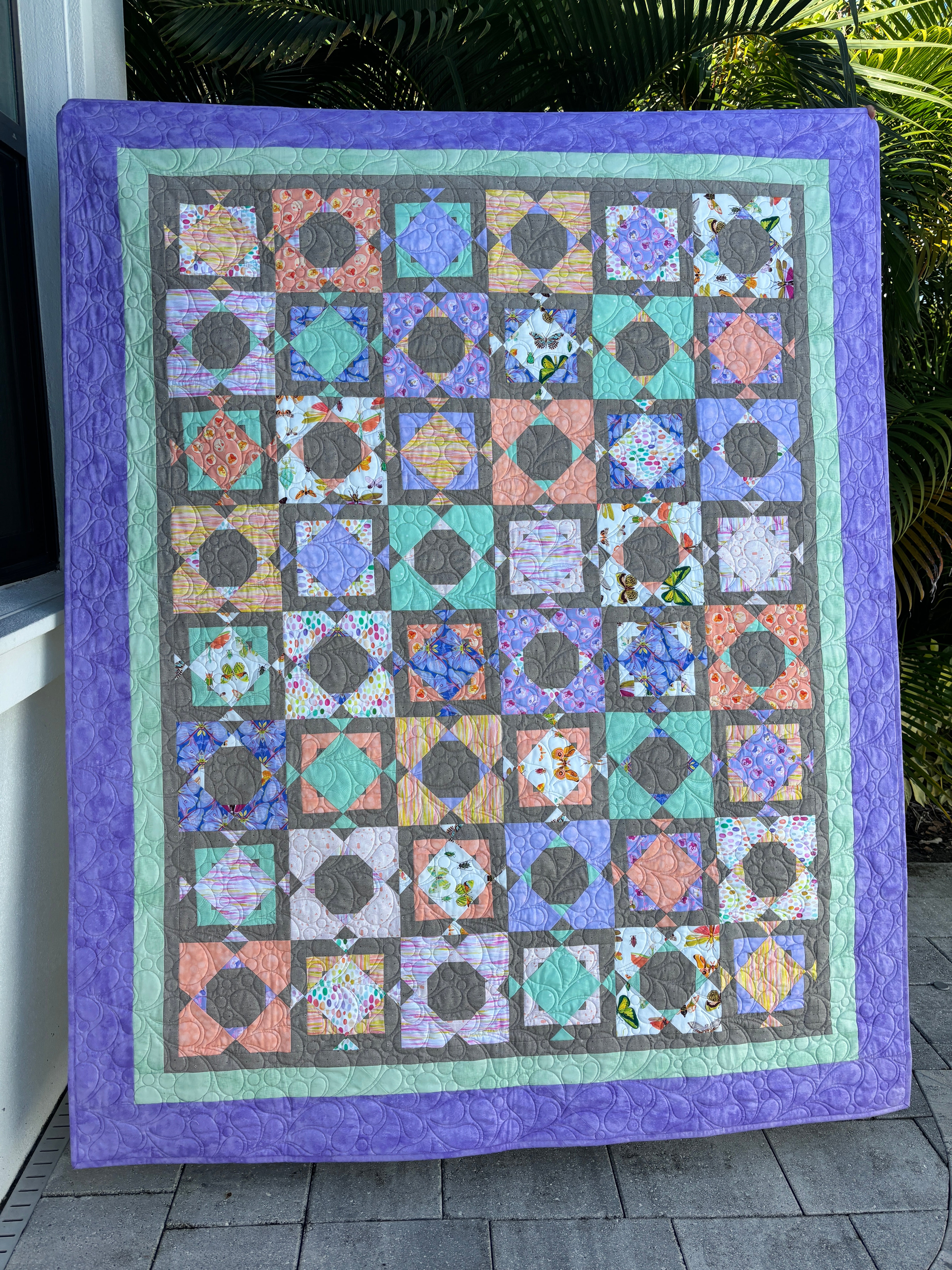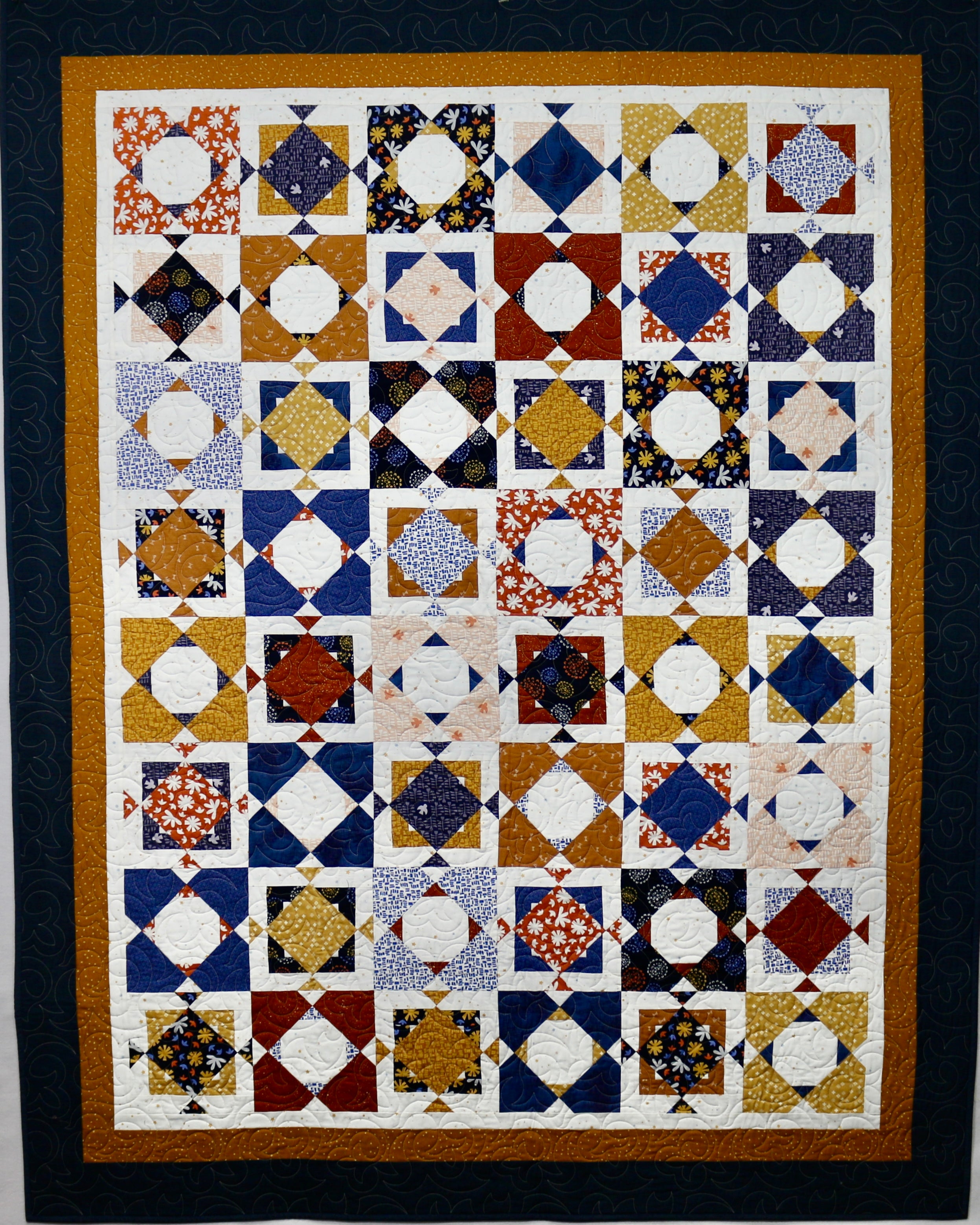 Margot is a versatile, timeless design that works beautifully with both light and dark backgrounds, making it a go-to pattern for quilters who love structure, flexibility, and striking results.