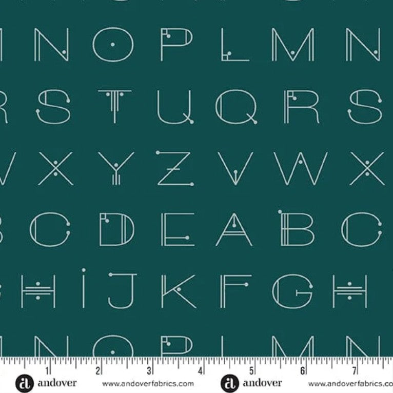 Scrawl Deco Letters Deep Teal from the Scrawl collection by Guicy Guice for Andover Fabrics.
