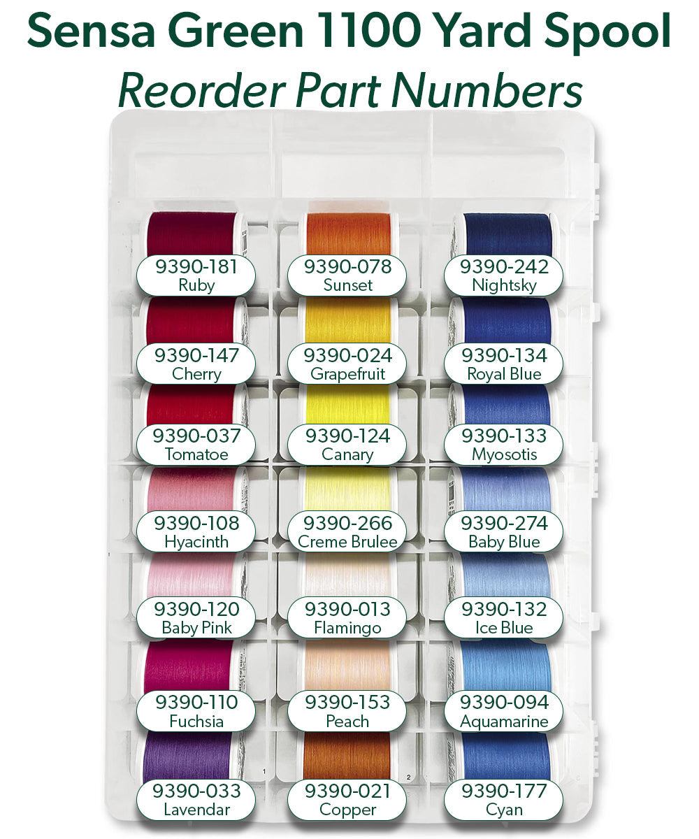 - 40 - 1100-yard (1000m) Spools of Sensa Green 40 Thread – Solid Colors