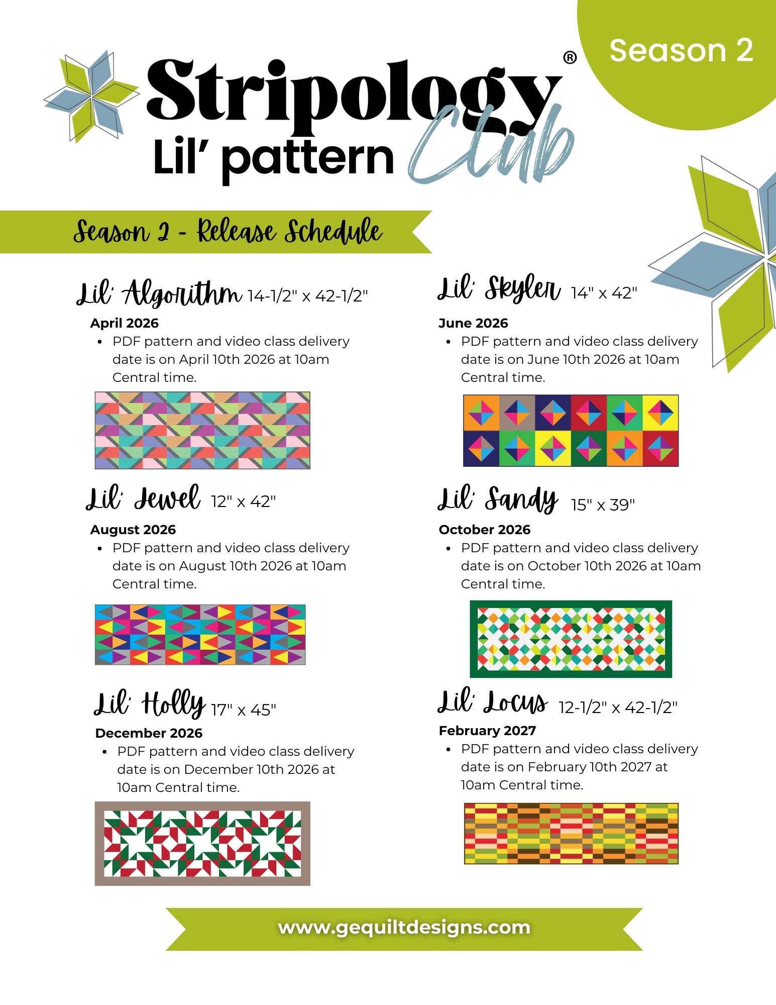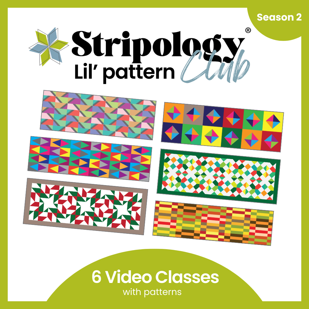 Join Gudrun Erla and the vibrant Stripology quilting community for a second season of the top selling Lil' pattern club! Over the course of a year, you’ll sew through six stunning small projects using the Stripology Mini rulers while learning expert techniques from Gudrun herself.