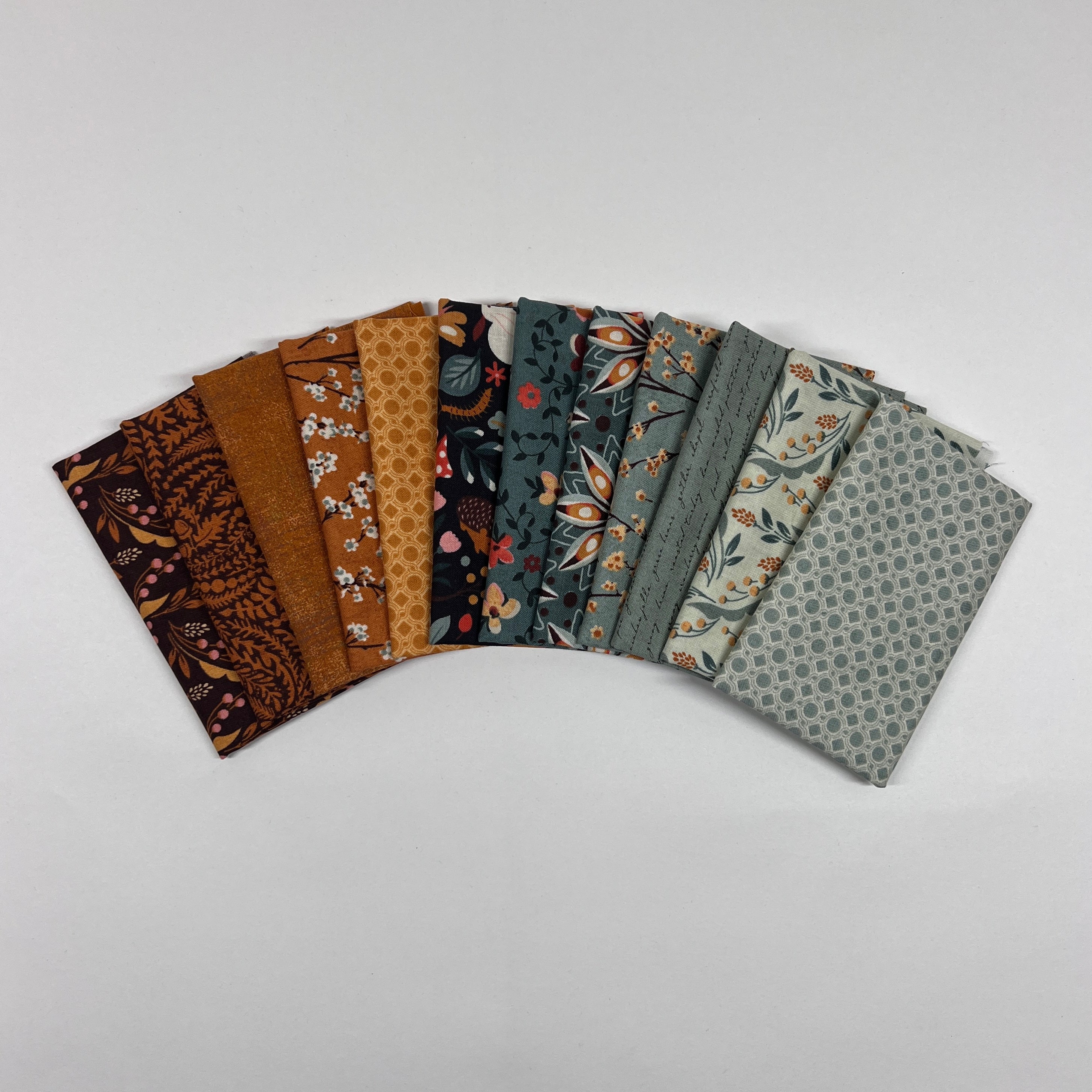 The Acorn Hollow Lil' Bundle includes 12- 6"x21" cuts of fabric from the Acorn Hollow collection by BasicGrey for Moda Fabrics to create any GE Designs Lil' Table Runner. The lil bundle does not include fabric for 1/4 yard of binding.