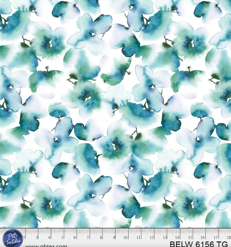 A continuous TWO yard cut of 108" wide Belle Watercolor Floral Teal for P&B Textiles.