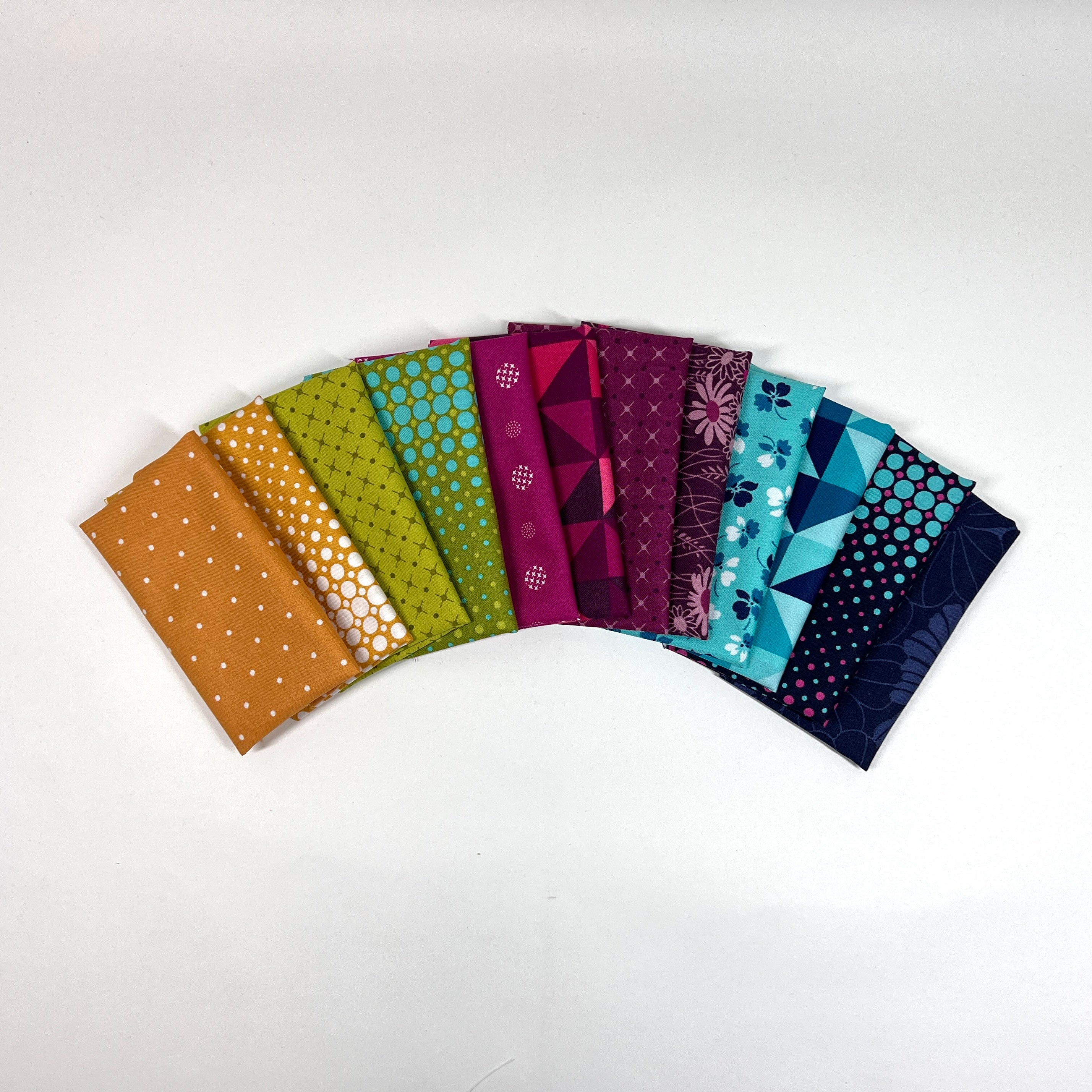 The Color Crush Lil' Bundle includes 12- 6"x21" cuts of fabric from the Color Crush collection by V & Co for Moda Fabrics to create any GE Designs Lil' Table Runner. The lil bundle does not include fabric for 1/4 yard of binding.
