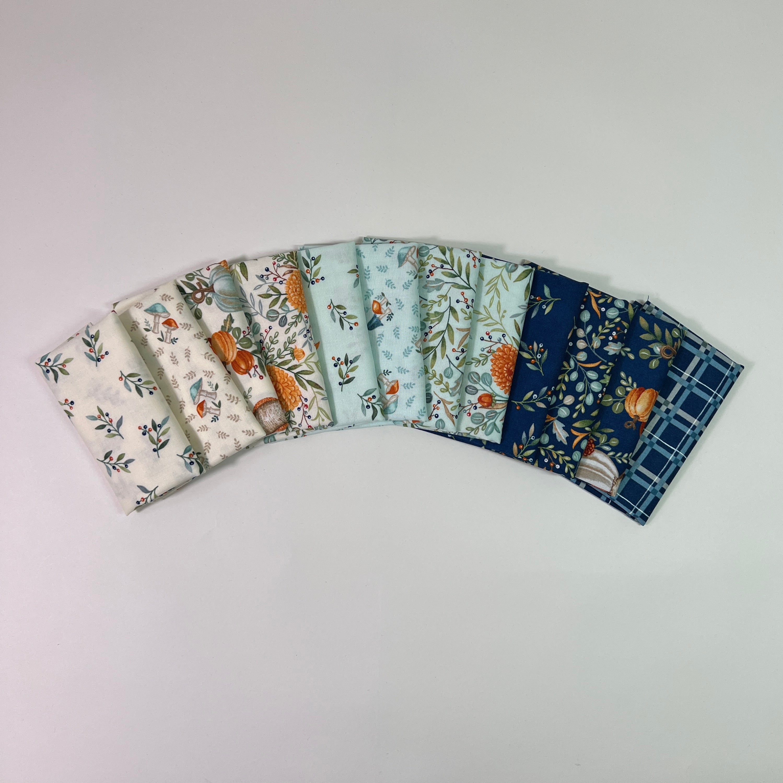 The I Love Fall Most of All Lil' Bundle includes 12- 6"x21" cuts of fabric from the I Love Fall Most of All collection by Deb Strain for Moda Fabrics to create any GE Designs Lil' Table Runner. The lil bundle does not include fabric for 1/4 yard of binding.
