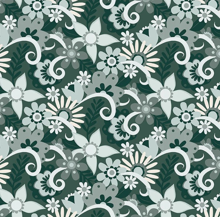 Little Goldi Floral Dark Teal from the Little Goldi collection by Meags & Me for Clothworks.