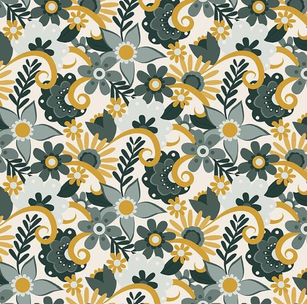 Little Goldi Floral Gold and Teal from the Little Goldi collection by Meags & Me for Clothworks.