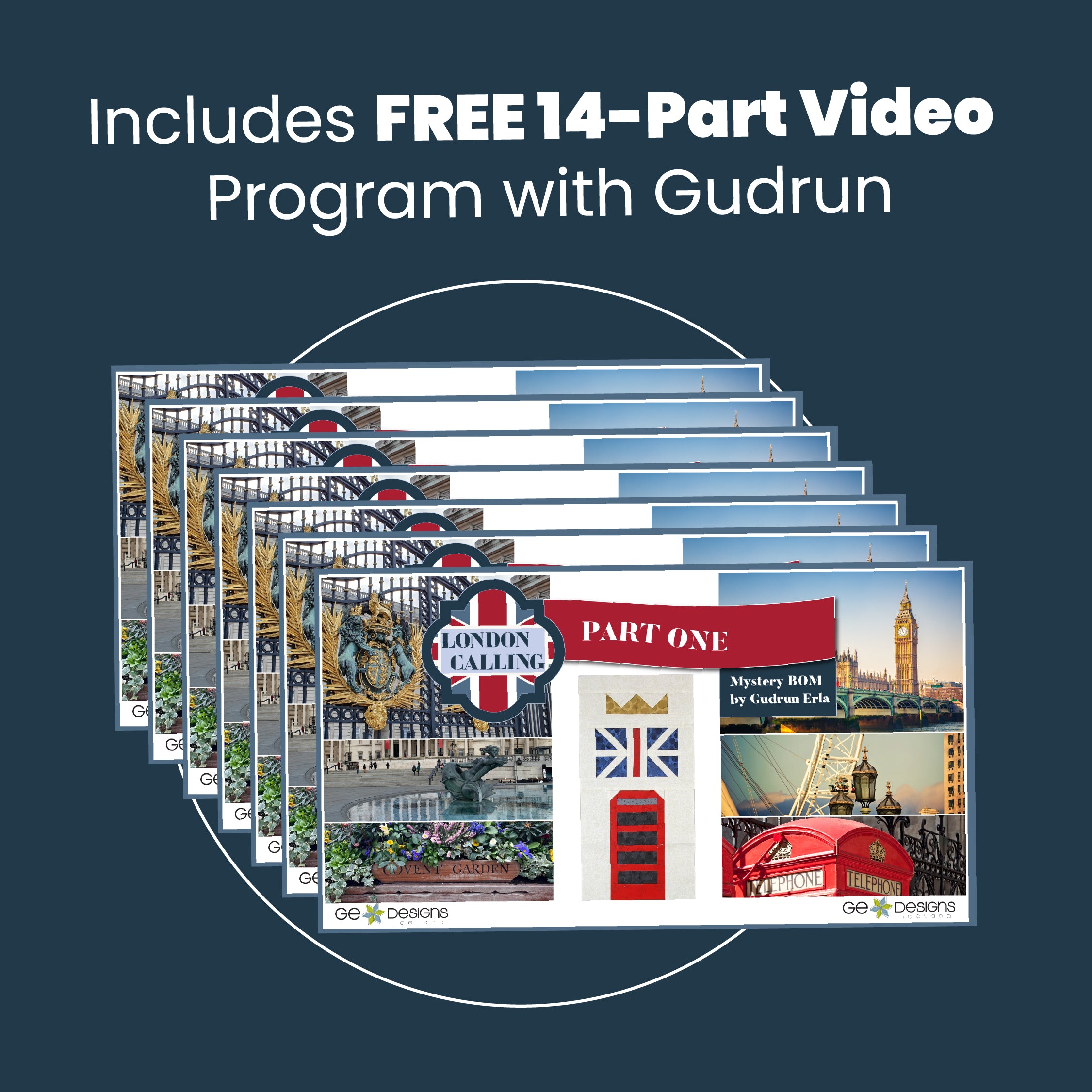 London Calling was a mystery-style Block of the Month quilt designed by Gudrun Erla. Stitch your way through London's iconic landmarks and history, block by block. The finished quilt measures 84" x 86", with an optional border to expand to king size. All 14 blocks are available instantly, work at your own pace.