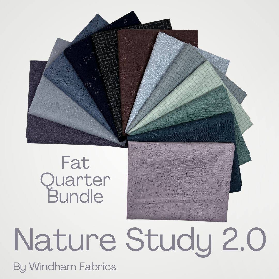 Explore the calm elegance of the natural world with Nature Study 2.0, a curated 12-piece fat quarter bundle from Whistler Studios for Windham Fabrics. This tranquil collection captures the essence of organic beauty with a modern twist—featuring delicate tonal prints, subtle textures, and earthy hues that shift from misty lilac and cool slate to rich evergreen and weathered brick.
