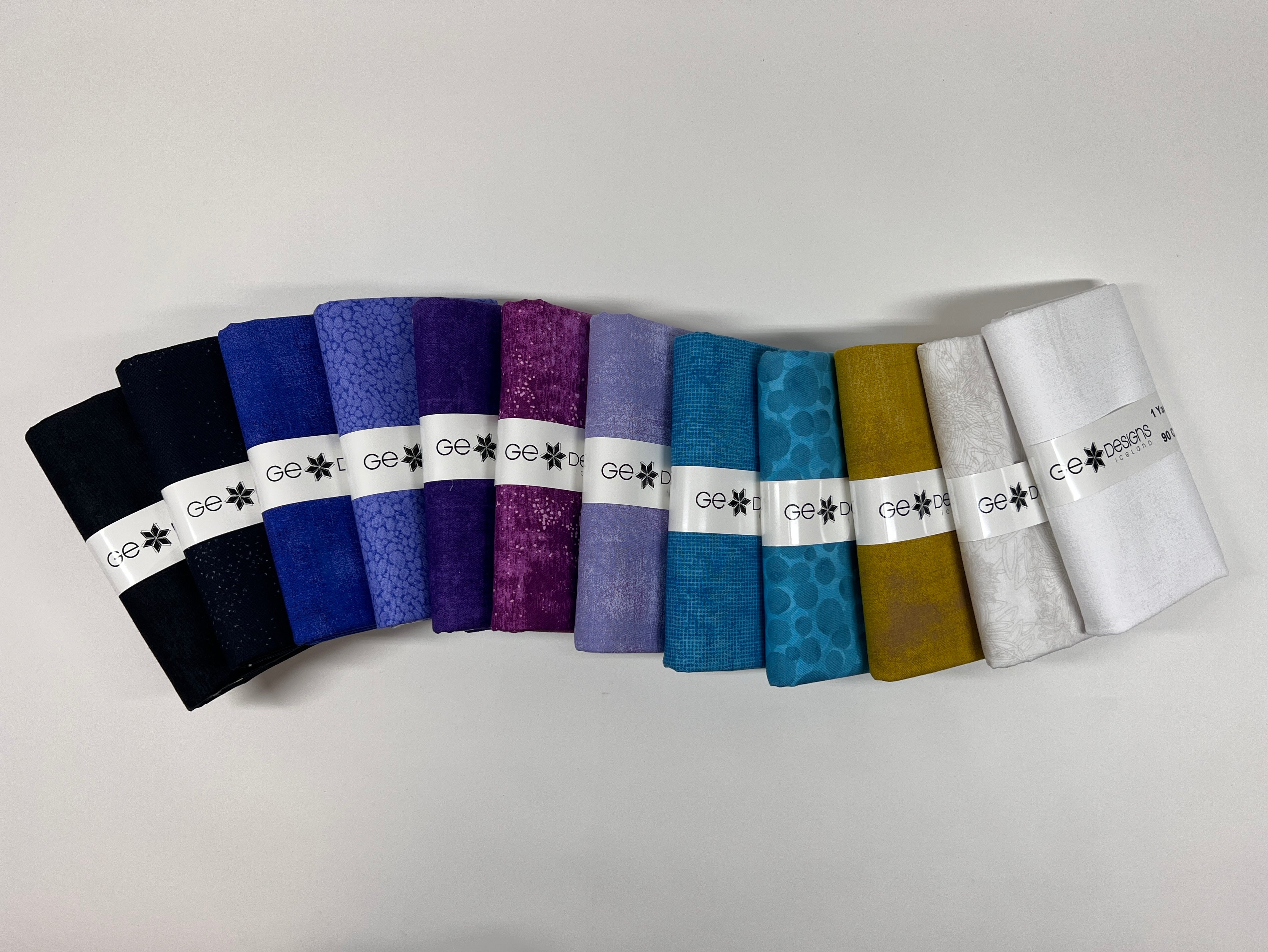Bright, bold, and beautifully designed—this 12 piece half yard bundle by Amy Tieman for P&B Textiles is the perfect addition to your quilting fabric collection. Featuring a stunning range of cool-toned prints in shades of blue, aqua, teal, and purple, this bundle brings together intricate linework, delicate florals, and dreamy textures that will make your next quilt truly shine.