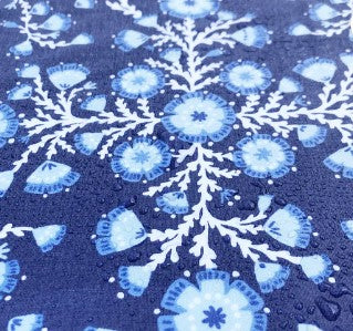 Splash Fabric is coated with a water-based urethane. This protective layer is rolled out in the factory and heat-set to the cotton. The result is a creamy, durable, soft, and all-around fantastic-feeling fabric.