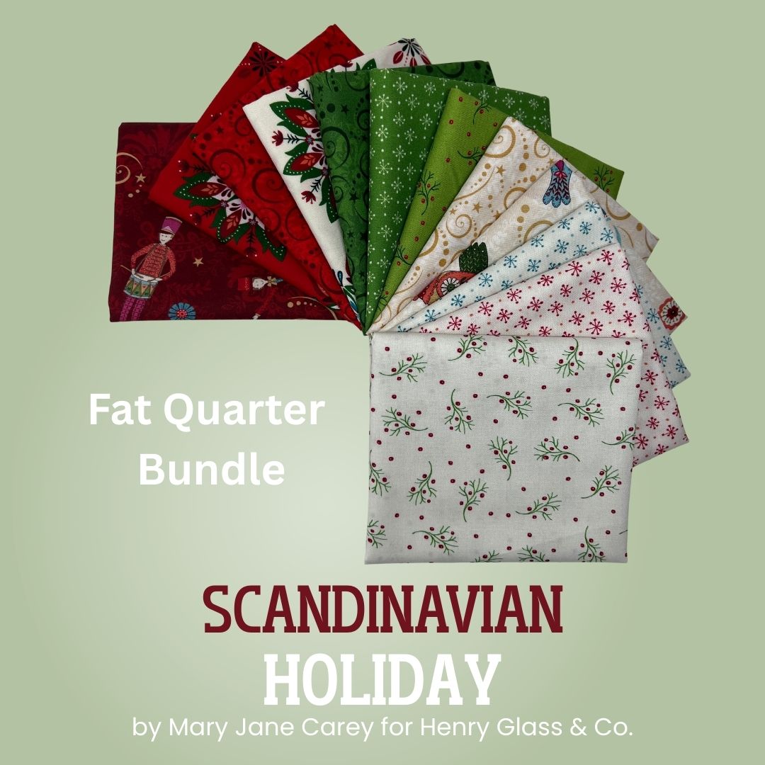 Celebrate the charm of the season with the Scandinavian Holiday collection by Mary Jane Carey for Henry Glass Fabrics. This 12-piece fat quarter bundle captures the warmth and tradition of Nordic-inspired Christmas design with festive reds, cheerful greens, icy blues, and soft creams.