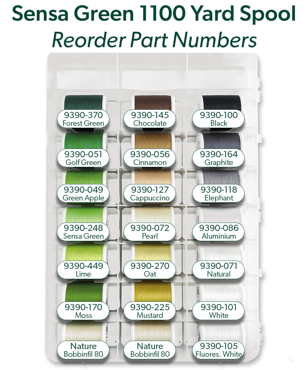 - 40 - 1100-yard (1000m) Spools of Sensa Green 40 Thread – Solid Colors