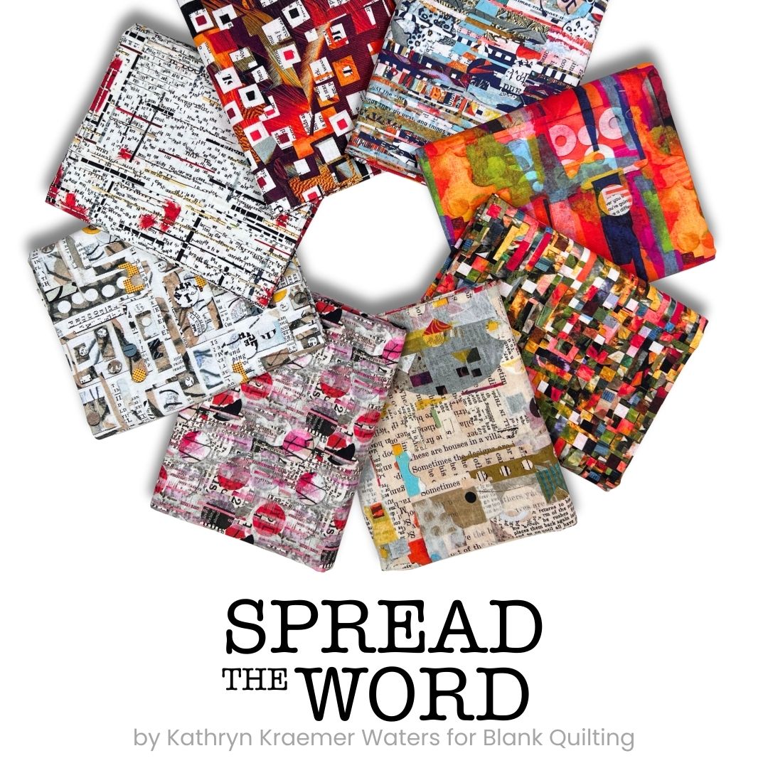 Make a statement with Spread the Word, an expressive 8-piece half yard bundle designed by Kathryn Kraemer Waters for Blank Quilting. Bursting with energy and texture, this collection layers type, imagery, and abstract forms into a powerful collage of color and communication.