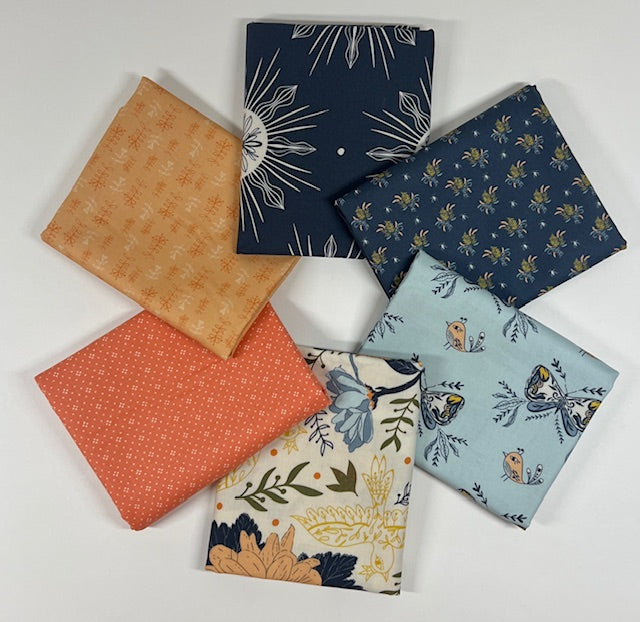 Fresh, whimsical, and full of charm, the Spring Promises collection by Amicreative for Phoebe Fabrics brings the beauty of nature straight into your sewing room. This 6 piece half yard bundle features a delightful mix of florals, sunbursts, butterflies, and sweet little birds, paired with versatile blenders in warm corals, soft golds, and calming blues.