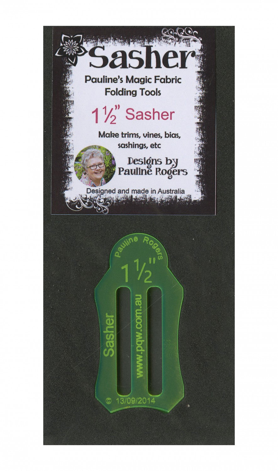 Pauline's Magic Fabric Folding Tools 1-1/2in Sasher - easily fold 3in bias or straight grain fabric strips. Sashers will fold strips in half or do a perfect bias fold. Simply cut your fabric strips 3in wide, either on the straight grain or bias, and your finished folded size will be 1-1/2in. Make Sashing strips for QAYG quiltmaking, Bag handles, etc No More Burnt Fingers!