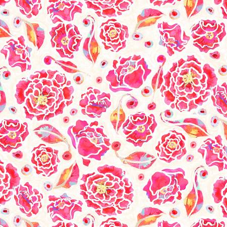 Tiny Wonders Painted Flowers Pink from the Tiny Wonders collection by Kim Green for P&B Textiles.