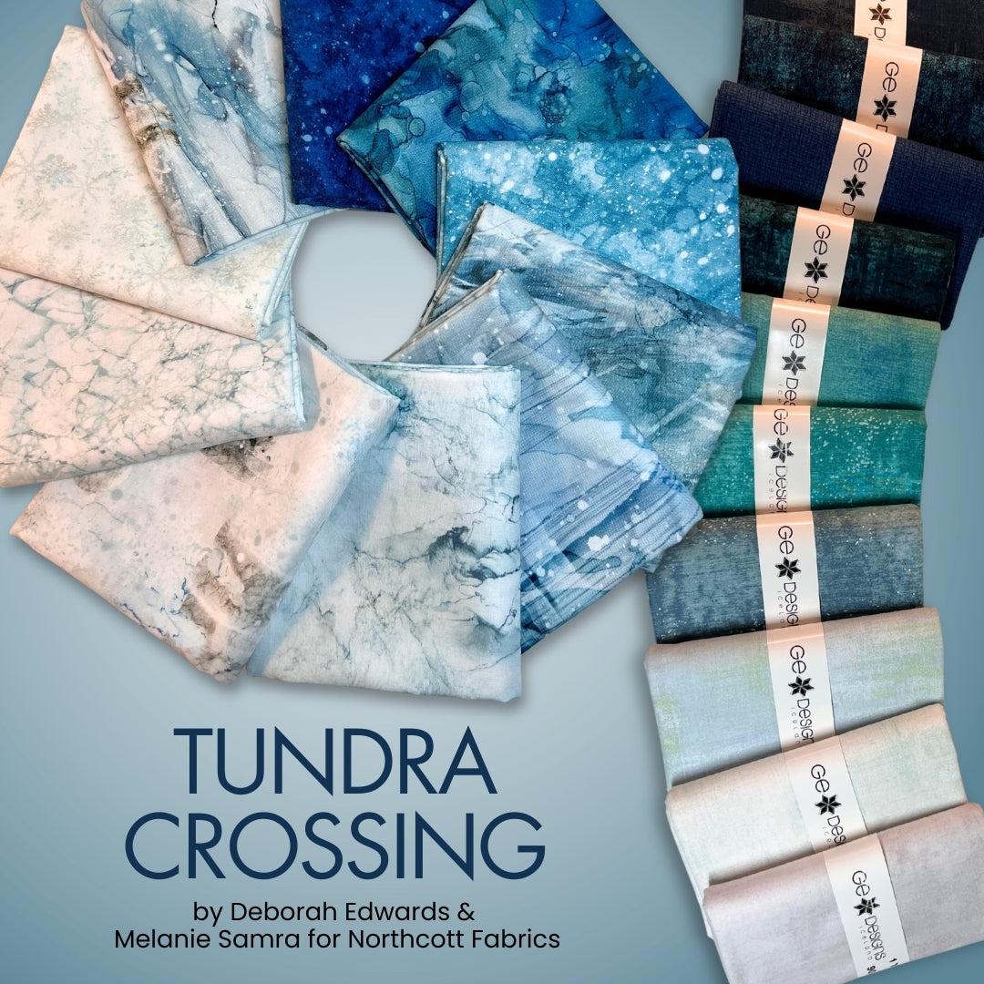 Journey into the serene beauty of the frozen north with the Tundra Crossing collection by Deborah Edwards and Melanie Samra for Northcott Fabrics. This 10-piece half yard bundle showcases a breathtaking palette of icy whites, frosty grays, and deep arctic blues with painterly textures and marble-like effects.
