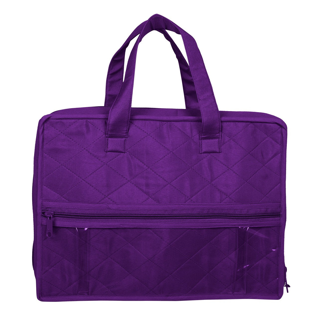 This ultimate quilted thread carry bag will hold 100+ plus 3 inch thread spools. This organizer has 9 zippered see-through pockets that hold approx. 12 spools in each pocket – total capacity is 100+ spools. This is a perfect storage solution to protect your investment in threads. It keeps them dust free, and easy to view and select. The bag has an easy carry handle and is a must have for the serious thread enthusiast.
